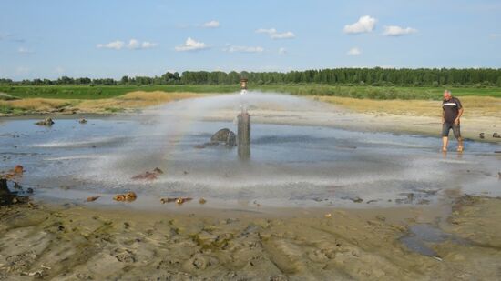oft auch nur gemähtes Grünland für Viehfutterrollen. Wir umfahren Tobolsk und finden etwa 35km nördlich der Stadt diesen Geysir,