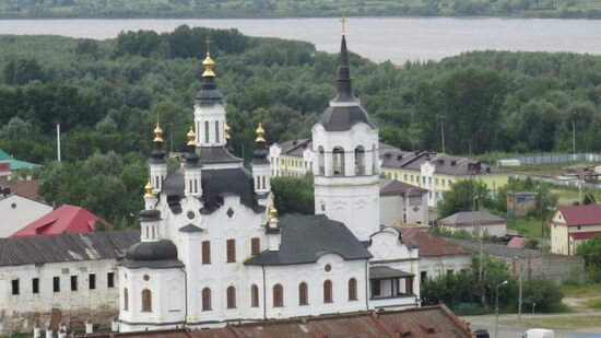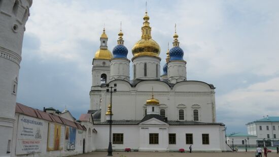 Tobolsk, gegründet 1587, war einst Sibiriens Hauptstadt, ist jedoch irgendwie in Vergessenheit geraten als zuerst die Poststrasse und dann die Eisenbahn nur entfernt daran vorbeigeführt wurden, war für viel Durchgangsstation auf der Reise ins Exil. Die Berühmtesten darunter wohl Dostoevsky und die Romanows, die russische Zarenfamilie die hier mehrere Monate verbrachte, bevor sie zur Exekution nach Yekaterinburg geschafft wurde. Droben auf dem Hochufer ein beeindruckender Kreml,