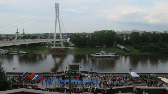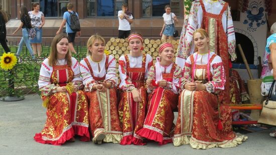 und während Tobolsk wie im Tiefschlaf auf Touristen wartend wirkte, ist hier, zumindest heute am Samstag Party auf allen Plätzen. Die Stadt feiert ihr 433 jähriges Bestehen, aber wie, im Quartier der Buchhändler eine kleine Buchmesse, in der Altstadt mit ihren schönen Holzhäuser