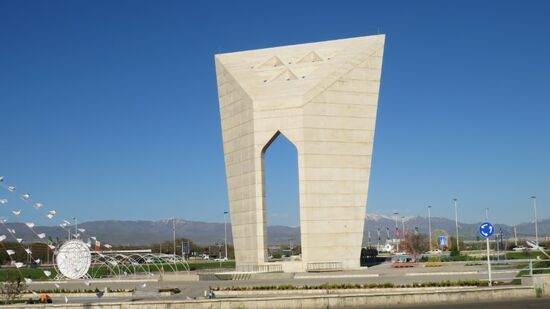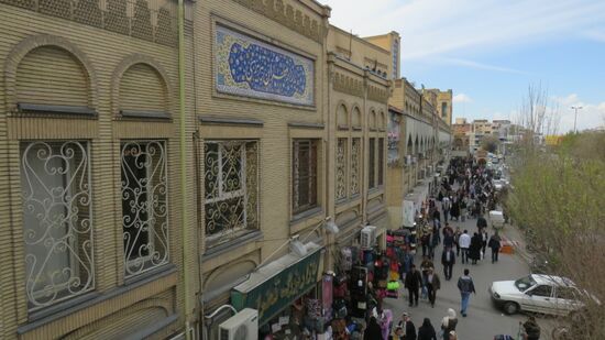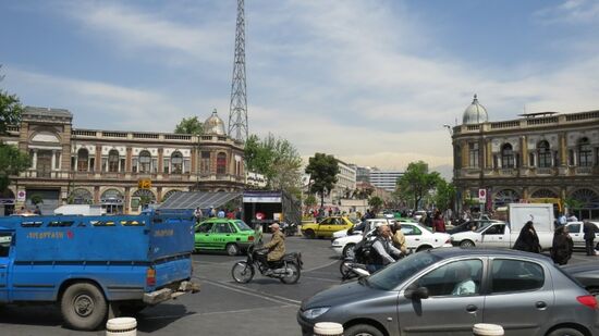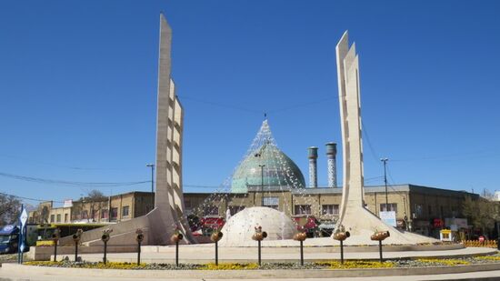 an das sich der gedeckte Bazar anschliesst. Bei der Ausfahrt aus der Stadt mitten im Kreisverkehr das Tor nach Teheran