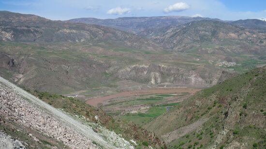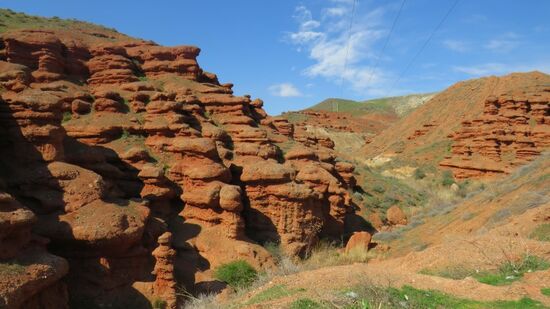 und weiter erst bergab durch das Qezel Owzan Tal mit seinen roten Sandstein Felsen,
