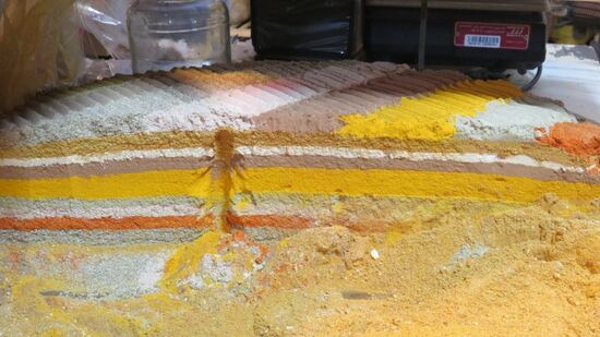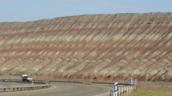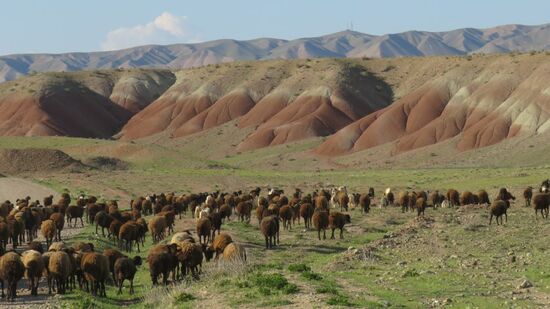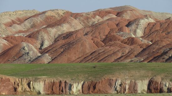 und erreichen so die ‚Colourful Mountains‘, ein Gebiet, das sehr an die ‚Painted Desserts‘ in Arizona oder Australien erinnert. Mineralien-haltiger Sand, Sandstein bunt gemischt in allen Farben, mal grün,
