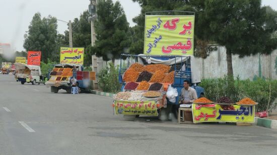Der Weg nach Qom, nach Mashhad der zweitheiligsten Stadt des Iran, führt durch wüstenartige Landschaft, an den zahllosen Ständen entlang der Strasse wird nun statt Obst und Gemüse Nüsse und getrocknete Früchte verkauft,