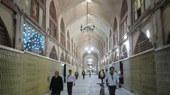 Wir fahren weiter nach Esfahan, parken auf einem SP an einem kleinen Park im Norden der Stadt und fahren mit der U-Bahn in die Stadtmitte. In den aus dem 11. Jh stammenden Bazar-e Honar können wir nur einen ganz kurzen Blick werfen, denn dort ist von 13h -16h Mittagspause,
