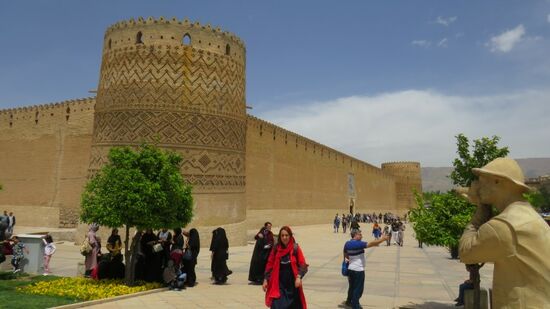 Wir fahren mit der U-Bahn in die Stadtmitte von Shiraz, kommen nahe der alten Zitadelle wieder ans Tageslicht und fragen uns, wie man nur eine Zisterne und ein Badehaus direkt unter einem Turmfuss anlegen kann – da muss doch etwas schief gehen, aber noch steht er ja.