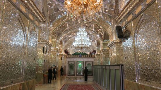 Im Aramgah-e Shah-e Cheragh zwei Mausoleen, für Brüder von Imam Reza, die wie schon in Qom von Ungläubigen nur in Begleitung betreten werden dürfen. Unser Führer war recht großzügig, liess uns in Ruhe fotografieren, wir durften sogar in die Räume mit den Schreinen eintreten, nur dort war ein respektvoller Abstand erwünscht um die Gläubigen nicht zu stören – dafür unser volles Verständnis. Hier der ‚etwas kleinere‘ Schrein von Sayyed Mir Ahmad, dem jüngeren Bruder,