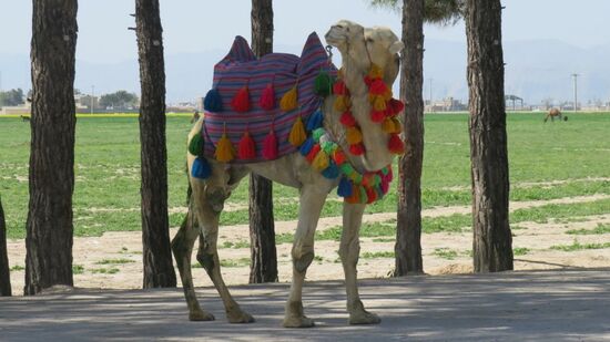Beim Verlassen von Persepolis kommen wir an diesem gesattelten Kamel vorbei,