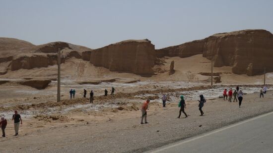 Am nächsten Morgen geht es weiter durch die Wüste Richtung Norden, gleich hinter Zahedan noch ein paar interessante Gesteinsformationen,
