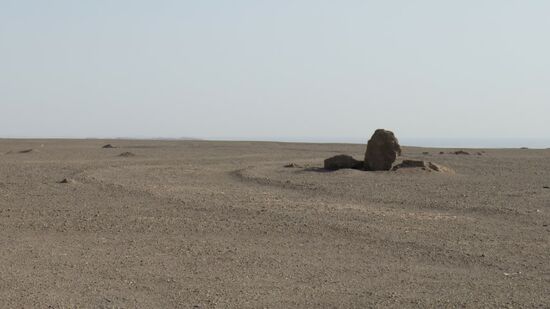 Kilometerweit geht es erst mal durch eine öde Steinwüste, bis wir endlich die berühmten Sandformationen der Lut Wüste erreichen.