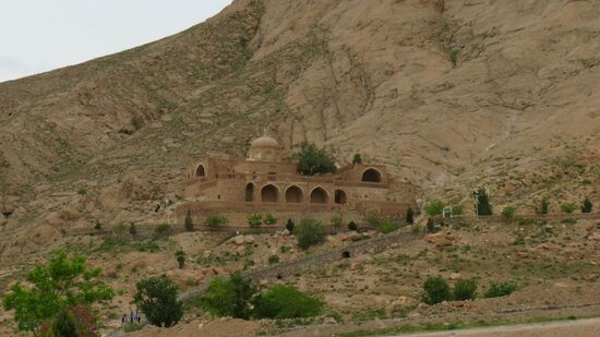 Des Rätsels Lösung: Die Strasse, die eigentlich noch 300km weit bis zur Grenze nach Pakistan führt, ist ab hier gesperrt, angeblich wurde beim letzten Unwetter ein Stück der Strasse weggespült und solange das nicht repariert ist, darf ab hier keiner mehr weiterfahren. Schade für uns, denn eigentlich wollten wir noch 12km weiter bis zur Rud Shur Bridge, die mitten in der Wüste eine kleinen Fluss überspannt und seit Kerman haben wir keinerlei (zumindest für uns lesbare) Hinweise auf diese Strassensperre gesehen. So fahren wir eben etwas vorzeitig den ganzen Weg zurück bis zur Hauptstrasse und biegen dann Richtung Süden ab, nächstes Ziel Mahan. Hier besichtigen wir kurz das Mausoleum des Poeten Shah Ne’matollah Vali