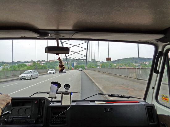 Bei Mor kleiner Stau. Straße nur einspurig, Baustelle. Hin und wieder blinken die entgegen kommenden Autos - sie warnen vor der allgegenwärtigen Polizei.