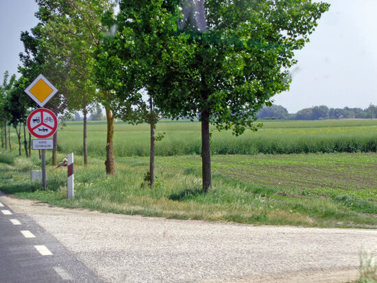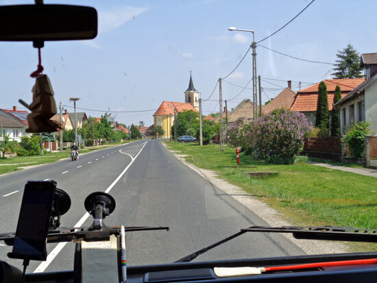 M 65 - diese Piste ist übel, sehr hoppelig. Wir haben 27 Grad. Die Fahrt führt am Fluss entlang, viele kleine Fischerhäuschen sind zu sehen. 61 Richtung Dombovar - 16.45 Uhr. 66 Richtung Pecs.