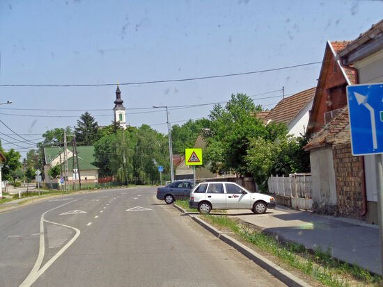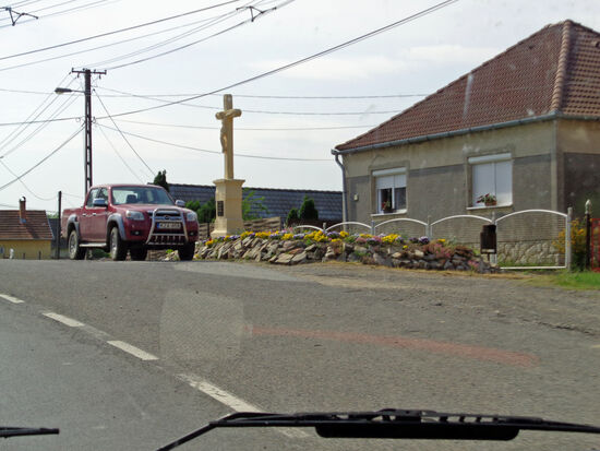 6 Richtung Pecs / Mohacs. Es ist eine schöne grüne hügelige Landschaft, mit vielen Pferden auf den Koppeln. Es scheint eine Motorradradstrecke zu sein. Wir sehen viele Kreuze, die an die Verunglückten erinnern.