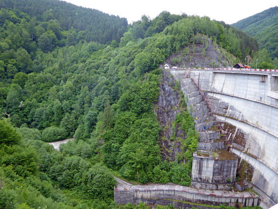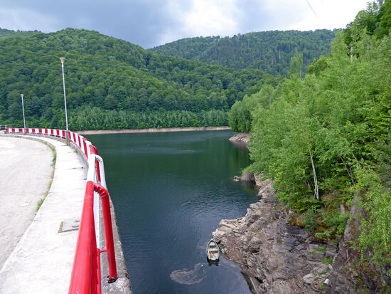 Der Damm ist ein doppel-gewölbter Stahlbetonbau mit einer Höhe von 78 m, der bis zum Zusammenfluss des Flusses Sebes mit dem Fluss Bistra reicht . Die Länge der Überdachung beträgt 178 m und wurde 1984 in Betrieb genommen. Der Damm ermöglicht die Ansammlung einer Wassermenge im Speicher von 21 Millionen Kubikmeter. Bei normalem Retentionsniveau beträgt die Oberfläche des Sees ca. 81 ha. Der Damm wird von Hidroelectrica verwaltet.