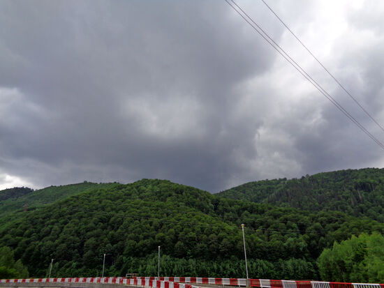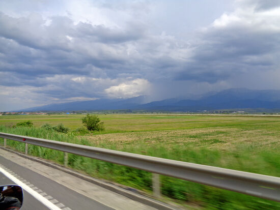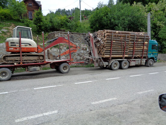 Ab Jina beginnt eine Katastrophenstraße. Steine, Schlamm, Geröll – Rolf muss sich seinen Weg bahnen. Weiter bis Oasa Mare Eine herrliche Gegend ist das hier. Leider fängt es an zu regnen, wir kehren um.