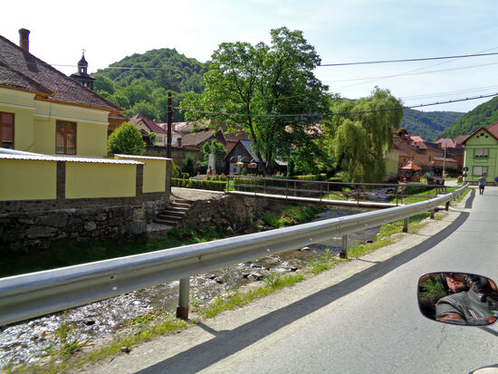 In Saliste machen wir Pause. Wir wollen uns den Ort mit den schönen Häusern genauer ansehen. Mir gefällt auch der herrliche kleine Park, am Parul Negru, einem Nebenfluss des Cibin River. Außer schönen Blumen finden sich im Park Statuten von Berühmtheiten.