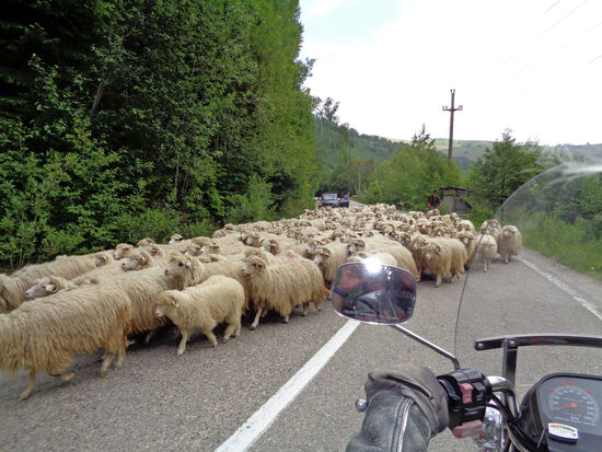 Unsere Fahrt geht weiter. Immer wieder begegnen uns Schafherden auf der Straße, da heißt es langsam tun bzw. wir warten, bis die Herde vorbei gezogen ist.