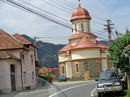 E68/1 Porumbacu de Jos / Avrig / Vestem / AB A 1/E81 bis Saliste / 106e - Gales / Tilisca / Rod / Poiana Sibiului / Jina / 67c - Sugag / Jidostina / Lacul Tau Bistra / Transalpina / Oasa Mare, 1.731 m / Sugag / Sasciori / Petresti / E68/1 bis Saliste: Häuser - orthodoxe Kirche / AB A 1/E81 bis Carta