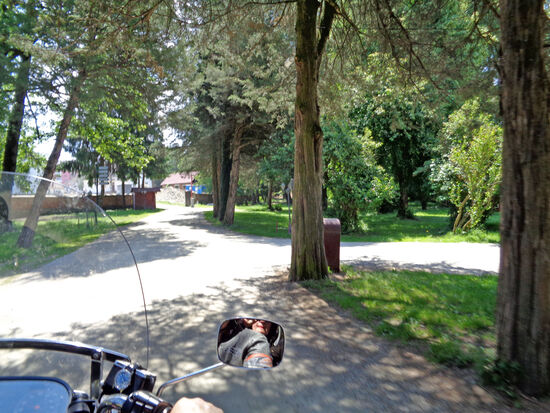 Im Garten gibt es eine Bar / Restaurant, wo wir unter schattigen Bäumen etwas trinken, ehe wir zurück auf den Campingplatz fahren. Rolf hat mal wieder eine abenteuerliche Straße heraus gesucht.
