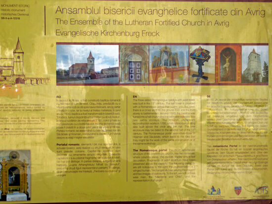 Im 13. Jahrhundert errichteten die Siebenbürger Sachsen eine deutsche Kirche, um ihre Position in Avrig zu stärken. Dies ist das älteste Baudenkmal der Stadt und eines der ältesten in der Grafschaft. Ursprünglich als romanische Basilika mit westlichem Turm, Chor und Apsiszentrum erbaut, wurde die Kirche zwischen 1260 und 1290 umgebaut. Im 16. Jahrhundert wurden die Kollateralen der Kirche entfernt und als Hallenkirche wieder aufgebaut. In seiner jetzigen Form sind noch der Glockenturm, das westliche Mittelschiff und der Chor aus dem alten Gebäude erhalten. Die Befestigungsmauern wurden im 15. Jahrhundert erbaut.
