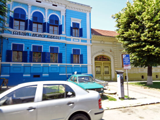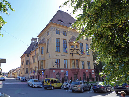Rolf hat schnell einen guten Parkplatz für uns gefunden – direkt am Liceul Teoretic Stephan Ludwig Roth. Eine Statue des berühmten Mannes erinnert an ihn.