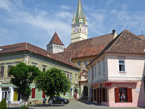 Wir verlassen Bazna und fahren nach Medias. Parken wie immer an der Kirchenburg, dann Einkauf beim Bäcker, schwarzes Brot und vier süße Teilchen. Die Bedienungen in dem kleinen Laden sind immer sehr freundlich zu uns.