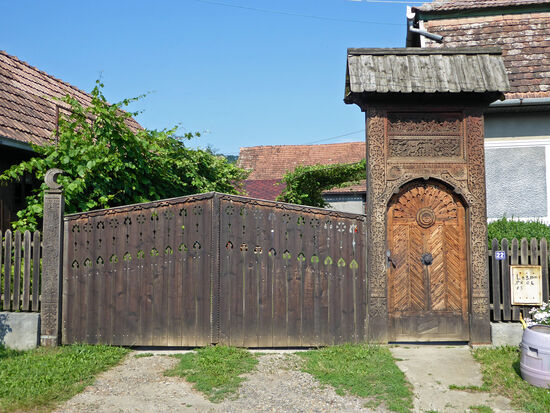 Geschnitzte Holztore, als Eingangspforten direkt an die Straße gesetzt, sind das Wahrzeichen des waldreichen Maramures.