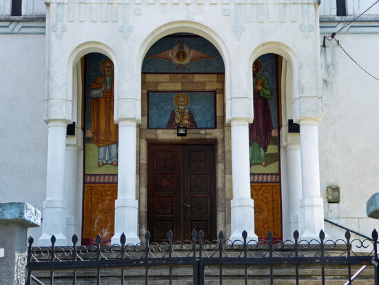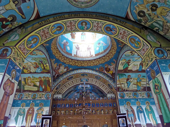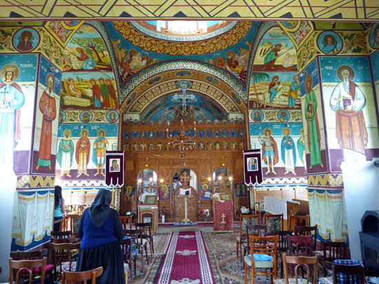 Nach dem gemütlichen Frühstück fahren wir um 9 Uhr los. Es geht ein bisschen in die Pampa. In Delenii halten wir an einer wunderschönen orthodoxen Kirche. Es findet gerade ein Gottesdienst statt. Als er beendet ist, können wir kurz in die Kirche hinein schauen, eher der Priester die Tür verschließt.