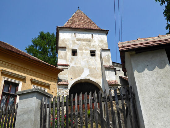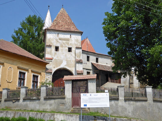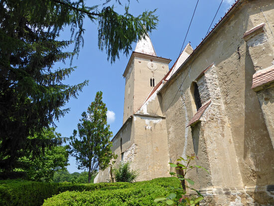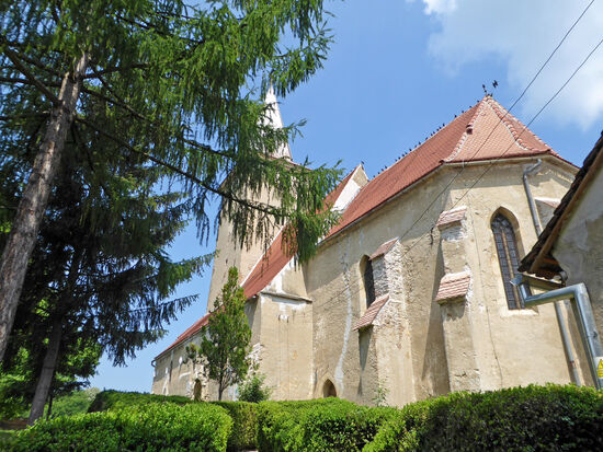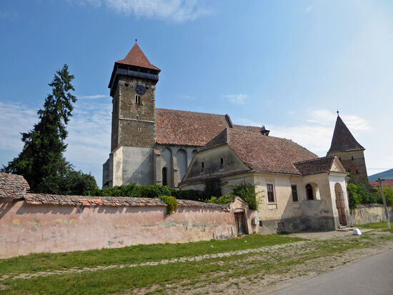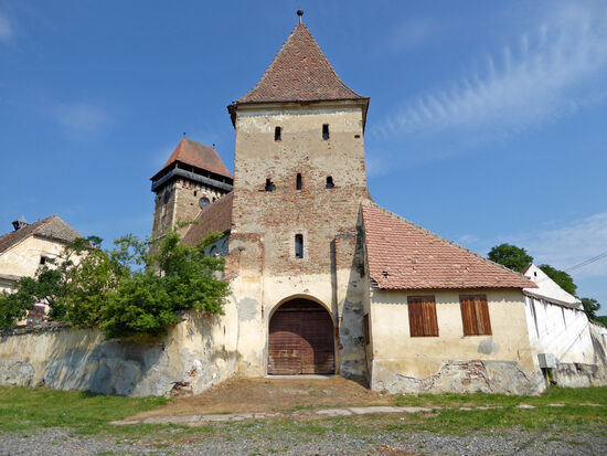 Die Kirchenburg befindet sich an der Hauptstraße des Dorfes. In seiner Mitte entstand um 1420 ein Gotteshaus, das im Laufe des 15. Jh. mit einer Ringmauer, einem Torturm sowie drei Basteien gesichert wurde. Neben dem Tor ist der Nordostturm bis heute erhalten geblieben. Ende des 15. Jh. wurde die Kirche um einen Glockenturm erweitert, der mit einem vorgelagerten siebenfach gestaffelten Trichterportal ausgestattet ist. Kurze Zeit später erfolgte die Befestigung der Kirche. Über dem Kirchensaal und auf dem Glockenturm entstand ein Wehrgeschoss, das auf Strebepfeilern ruht. Es wurde im 18. und 19. Jh. schrittweise entfernt, allerdings am Glockenturm rekonstruiert. Das vorhandene Chorgestühl aus dem Jahr 1533 ist eines der wertvollsten seiner Art in Siebenbürgen.