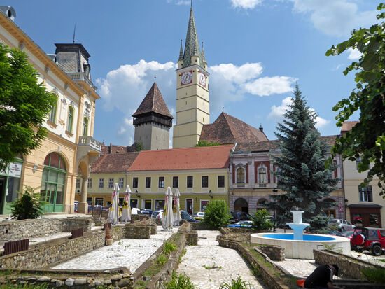 Die ungarische Bevölkerung ist auch hier sehr freundlich zu uns. Das ist einfach ein anderer Menschenschlag als die Rumänen. Mittlerweile ist es knallheiß geworden. Wir haben genug besichtigt und fahren zurück nach Medias. Erst zum Bäcker, Brot, Brötchen und Teilchen einkaufen, dann geht es zum Restaurant Zur Traube, wo wir zu Mittag essen.