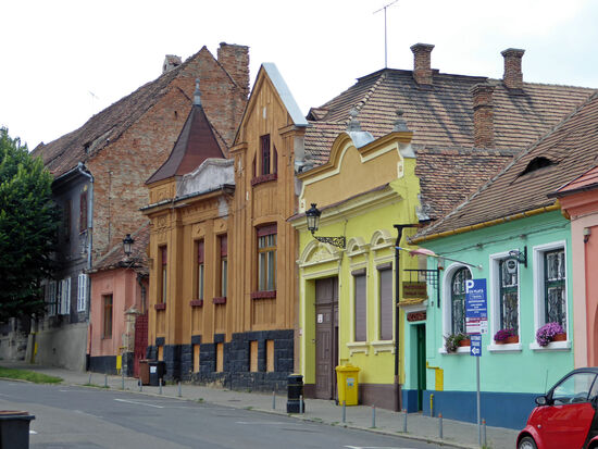Wir kehren um, fahren die gleiche Strecke bis Blaj zurück und von dort weiter bis Medias, biegen dort später ab nach Darlos. Ich bin hier mal wieder begeistert von den herrlich bunten Häusern, in richtigen Knallfarben. Da sieht alles gleich viel schöner aus. Rolf findet die bunten eher nicht so toll. Geschmäcker sind eben verschieden.