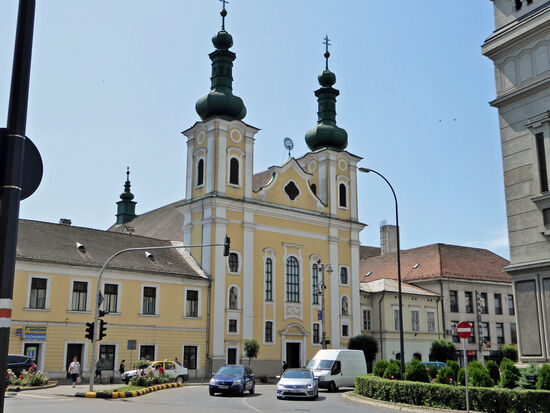 Das wichtigste rein barocke Gebäude der Stadt wurde von den Jesuiten in einer langen, oft von Kämpfen und Geldsorgen unterbrochenen Bauzeit zwischen 1728 und 1764 errichtet. Die Kirche wurde vom Jesuiten Valentin Scherzer entworfen und unter der Leitung des Konrad Hammer-Handwerkers in Cluj erbaut.