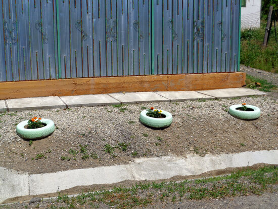 Kurzer Halt in Rusi (Reußen). Wir wollen den schiefen Turm fotografieren.