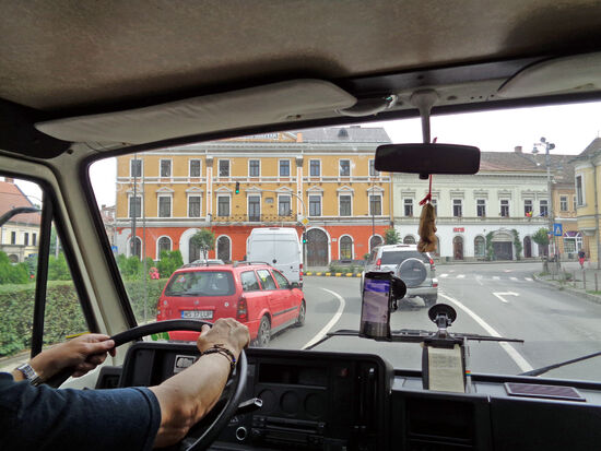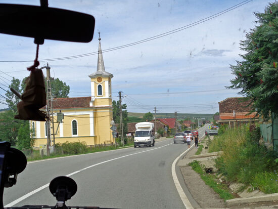 Wir biegen ab und fahren 25 km auf einem asphaltierten Feldweg. Gegen 9.45 Uhr erreichen wir Targu Mures. Hier herrscht starker Verkehr. Um 10.15 Uhr sind wir in Gornesti. Ein sehr schöner Ort, mit hübschen Häusern, geschmückt mit Blumen. Viele Storchennester finden sich hier.