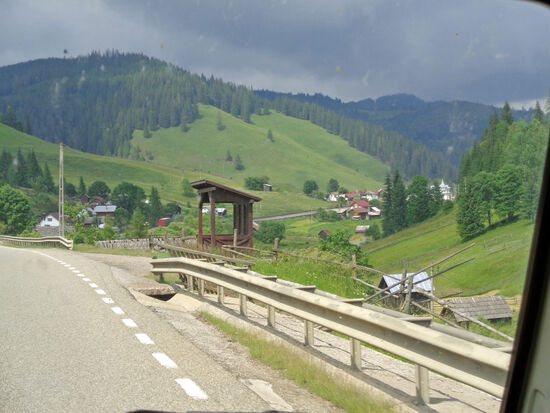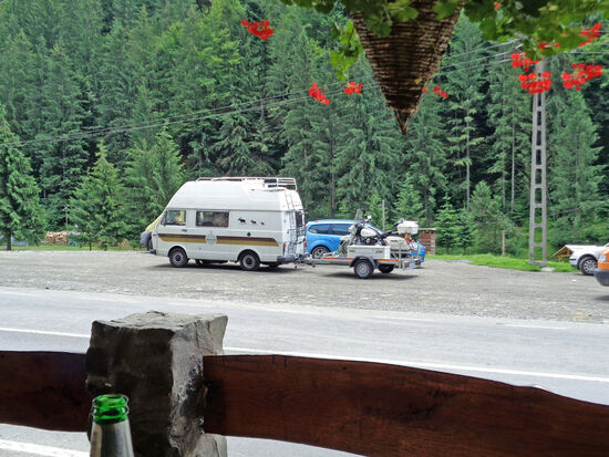 Gegen 14 Uhr fahren wir weiter. Rolfs Bus muss bei der Fahrt über den Tihuta Pass, 1.208 m, arg schnaufen. Mit dem Motorrad ging das viel leichter. Es ist hier im Gebirge merklich kühler, vielleicht 18/20 Grad. Ich empfinde es als sehr angenehm nach der Hitze der letzten Wochen. Rolf fängt allerdings schon an zu frieren.