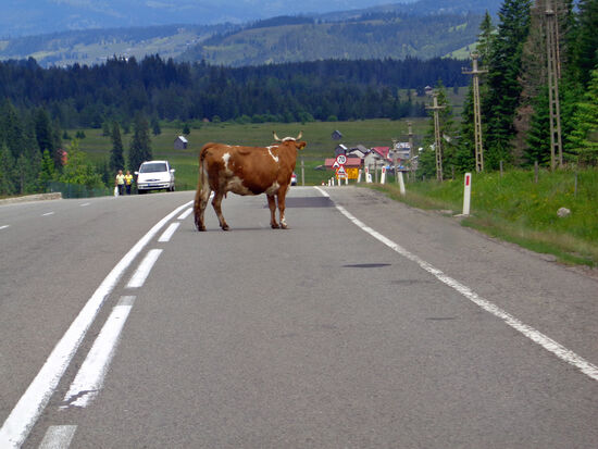 Es ist eine herrliche Berglandschaft, die wir passieren, völlig anders als da, wo wir die letzten 6 Wochen waren. Viele schöne kleine Bergdörfer. Plötzlich steht eine große Kuh mitten auf der Fahrbahn. Alle fahren vorsichtig drum herum.