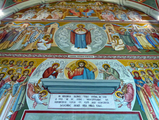Die Moldauklöster in der südlichen Bukowina bestechen durch ihre einzigartigen farbenfrohen Fresken, die sowohl die Innen- und Außenwände als auch die Schutzmauern über und über bedecken.