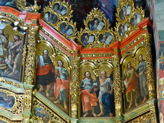 Heute hat die orthodoxe Kirche kein Problem mehr mit dem Rebell und präsentiert stolz die beiden prachtvoll bestickten Tücher in der großen Halle des Klostermuseums.