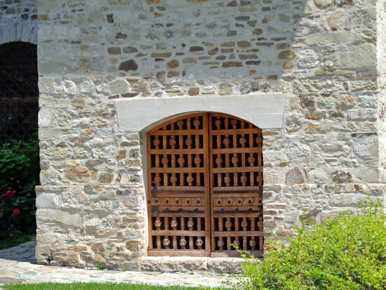 Mächtige Mauern umgeben das Kloster und lassen es wie eine kleine Festung erscheinen.