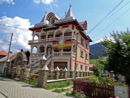 Wir machen uns nun auf den Heimweg. Unterwegs wollen wir in einem von außen sehr schönen Lokal etwas essen. Aber eine unfreundliche Dame wirft uns hinaus. Man habe eine geschlossene Gesellschaft. Ein entsprechendes Schild fehlte allerdings an dem steilen Treppenaufgang. Na ja, hier werden wir auch in Zukunft nicht speisen wollen. Wir fahren daher nach Campulung Moldovenesc, wo wir im Restaurant Bukowina Platz finden. Kartoffelsuppe, Salat, Schweinesteak, Kartoffeln, alles sehr lecker, 17,48 Euro für uns beide.