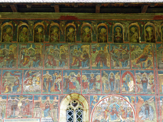 Die Klosterkirche war eine der ersten bemalten Kirchen im heutigen Rumänien. Fünf Jahre nach Fertigstellung des Klosters, also 1535, kamen die fantastischen Wandmalereien vom Künstler Toma Zugravul von Suceava hinzu, um auch den Analphabeten der Region die Lehren der Bibel näher zu bringen.