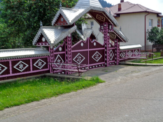 Auf der traumhaft schönen Strecke von Gura Humorului bis zum Kloster sind zahlreiche schön verzierte Holzhäuser zu sehen, die mit hölzernen Außenschindeln und großen Zinkblech-verzierten Toren auf sich aufmerksam machen.