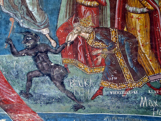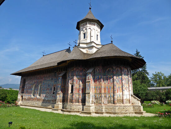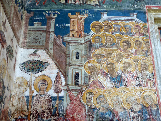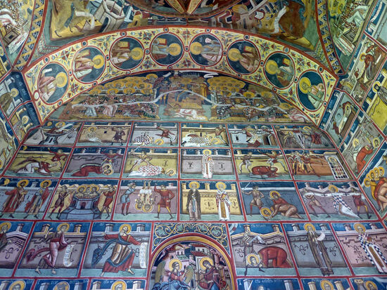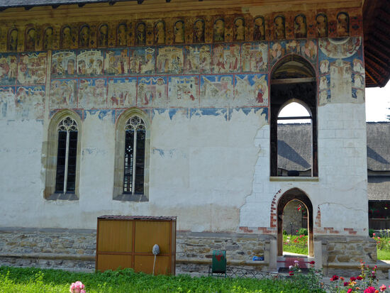 Die Innen- und Außenwände der Kirche wurden 1537 mit Wandmalereien versehen. Bedeutend sind u. a. „Das Jüngste Gericht“ sowie eine Darstellung der Belagerung Konstantinopels an der Südfassade.