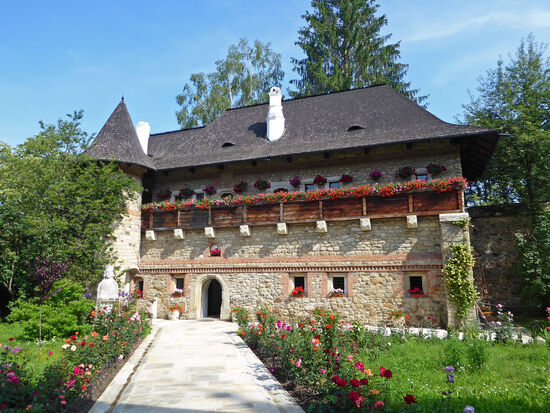 Der Stifter und Begründer des Klosters, Petru Rares, ließ die damalige Kirche mit riesigen Mauern und Wehrtürmen umgeben, so dass sie von außen ein wenig an eine Festung erinnert.