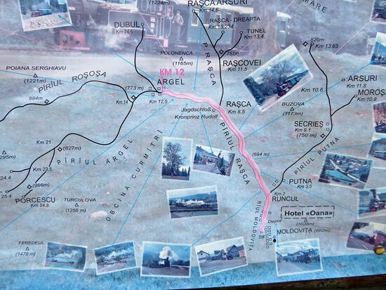 Zurück zum Bahnhof der Waldbahn Moldovita.