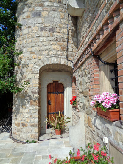 Die imposante Klosterkirche thront inmitten eines herrlichen Gartens und ist von 5 m hohen und gut 1 m dicken Mauern mit kreisrunden steinernen Wehrtürmen umgeben.