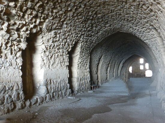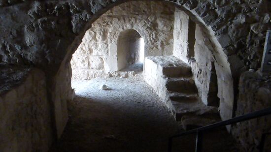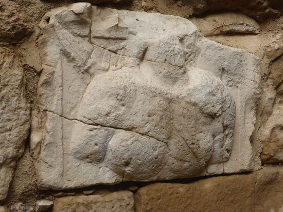 Auf der Ostwand, nach der Gewölbehalle, ist ein Relief zu sehen, das auf wiederverwendetem Baumaterial der Nabatäerzeit das Grabbild eines Reiters (Kavalleristen) hinweist.