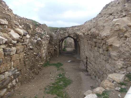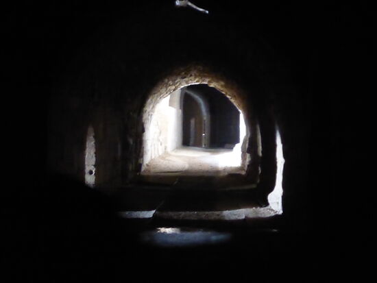 Der Weg in die Festung führt über eine Brücke des ursprünglich 30 m tiefen, heute teils aufgefüllten Grabens, mit dem die Kreuzritter die Burg von der Stadt abgrenzten.