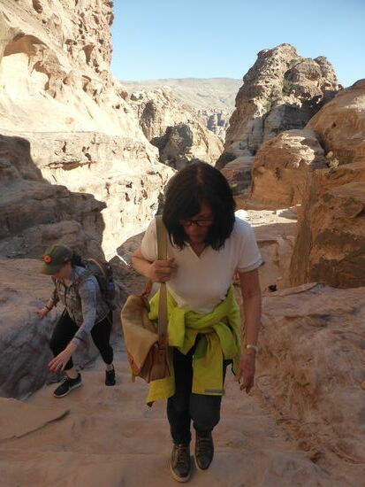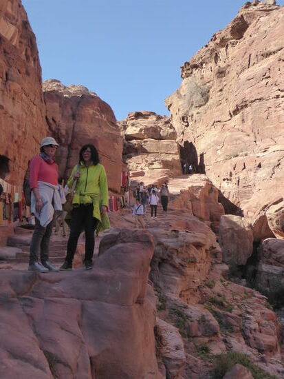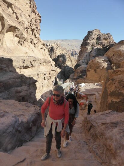 Es ist schon eine gewaltige Kraxelei, da die Stufen nur teilweise ausgearbeitet sind und immer wieder durch Abschnitte unterbrochen werden, in denen ausgewaschene Steine mit rutschigem Sand das Fortkommen schwer machen.