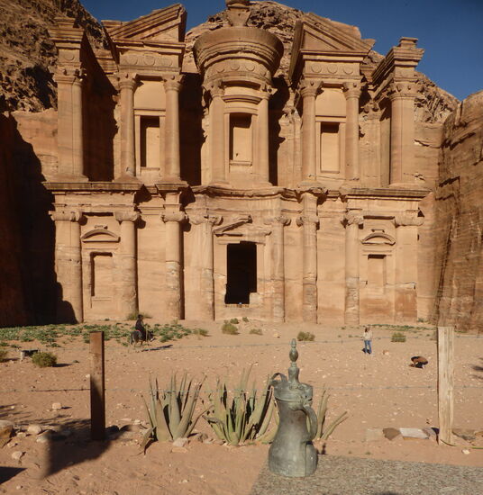 Ad-Deir – auch Kloster genannt – ist eines der größten Bauwerke in ganz Petra Es ist 47 m breit und 48,3 M hoch. Im Inneren befinden sich zwei Bänke und an der Rückseite ein Altar. Der Raum wurde als Speisesaal für die Sitzungen religiöser Gruppen verwendet. Das Kloster wurde im frühen 2. Jahrhundert n. Chr. unter der Regierung von König Rabel II. gebaut. Im hinteren Bereich kann man auch eingemeißelte christliche Kreuze sehen, da der Innenraum später als christliche Kirche genutzt wurde. Daher stammt auch die Bezeichnung "Kloster".